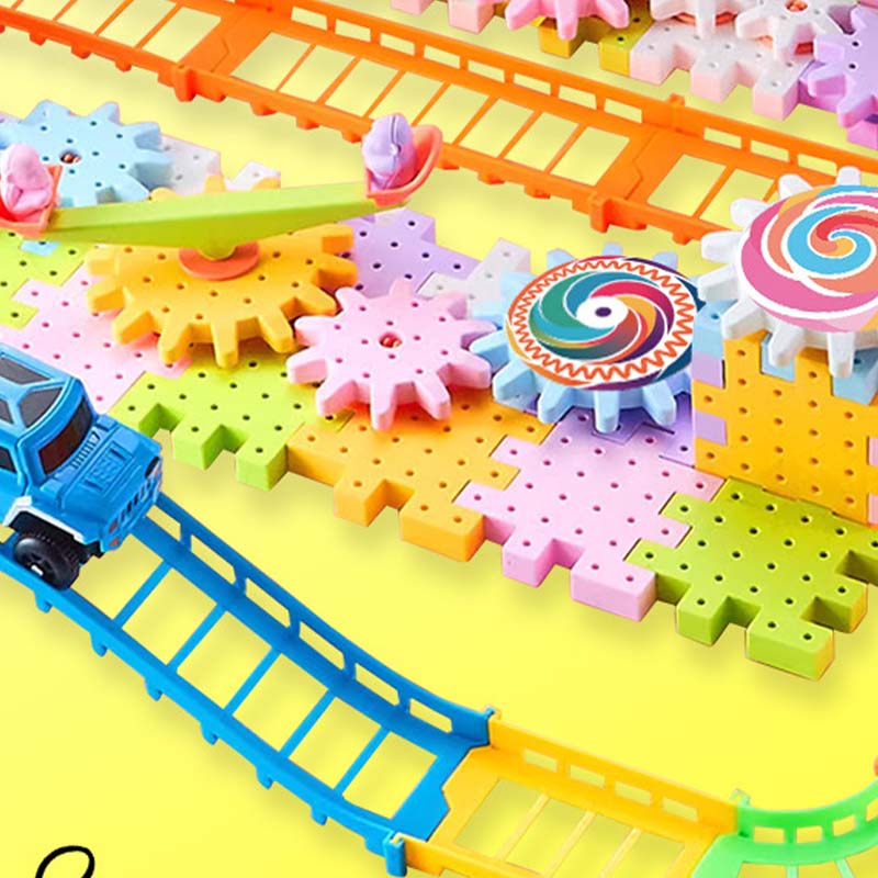 ENDLESS CREATIVITY - Go beyond simple stacking. This dynamic kit allows kids to build complex, moving structures with gears and tracks, challenging their imagination to create everything from carousels to entire amusement park layouts.