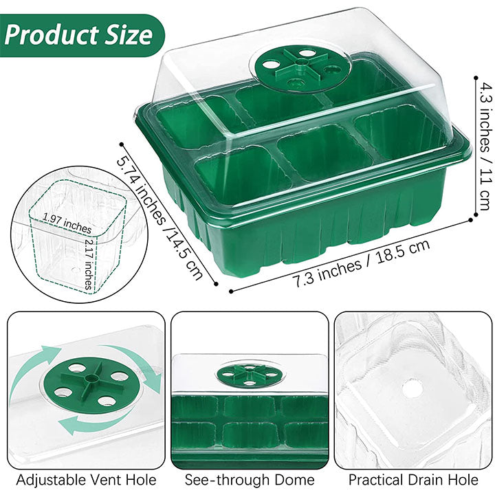 【Adjustable Humidity Design】Adjustable humidity from 50-100%. You can easily adjust the inner humidity and temperature by rotates the regulator to accommodate different stages of seed to seedling growth. The ventilation holes are good for the rapid growth of plants and fully controls the germination process.